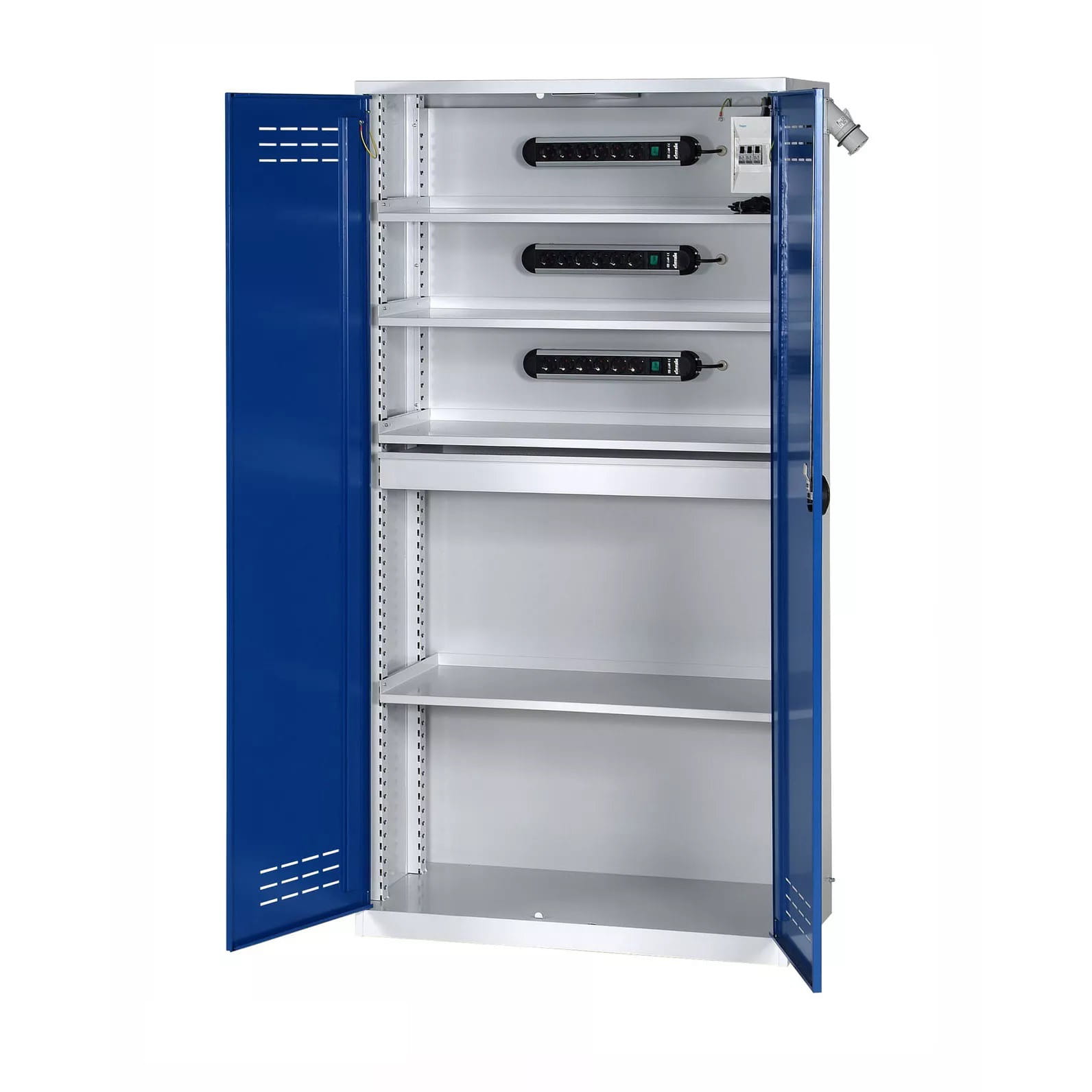 - Każda półka posiada listwę na 6 ładowarek 230V z wyłącznikiem
