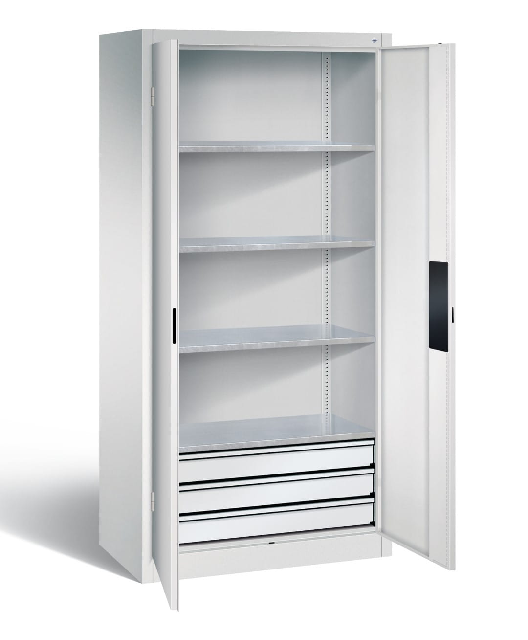 - 3 szuflady na prowadnicach teleskopowych z pełnym wysuwem, obciążenie 75 kg, powyżej 4 półki.
