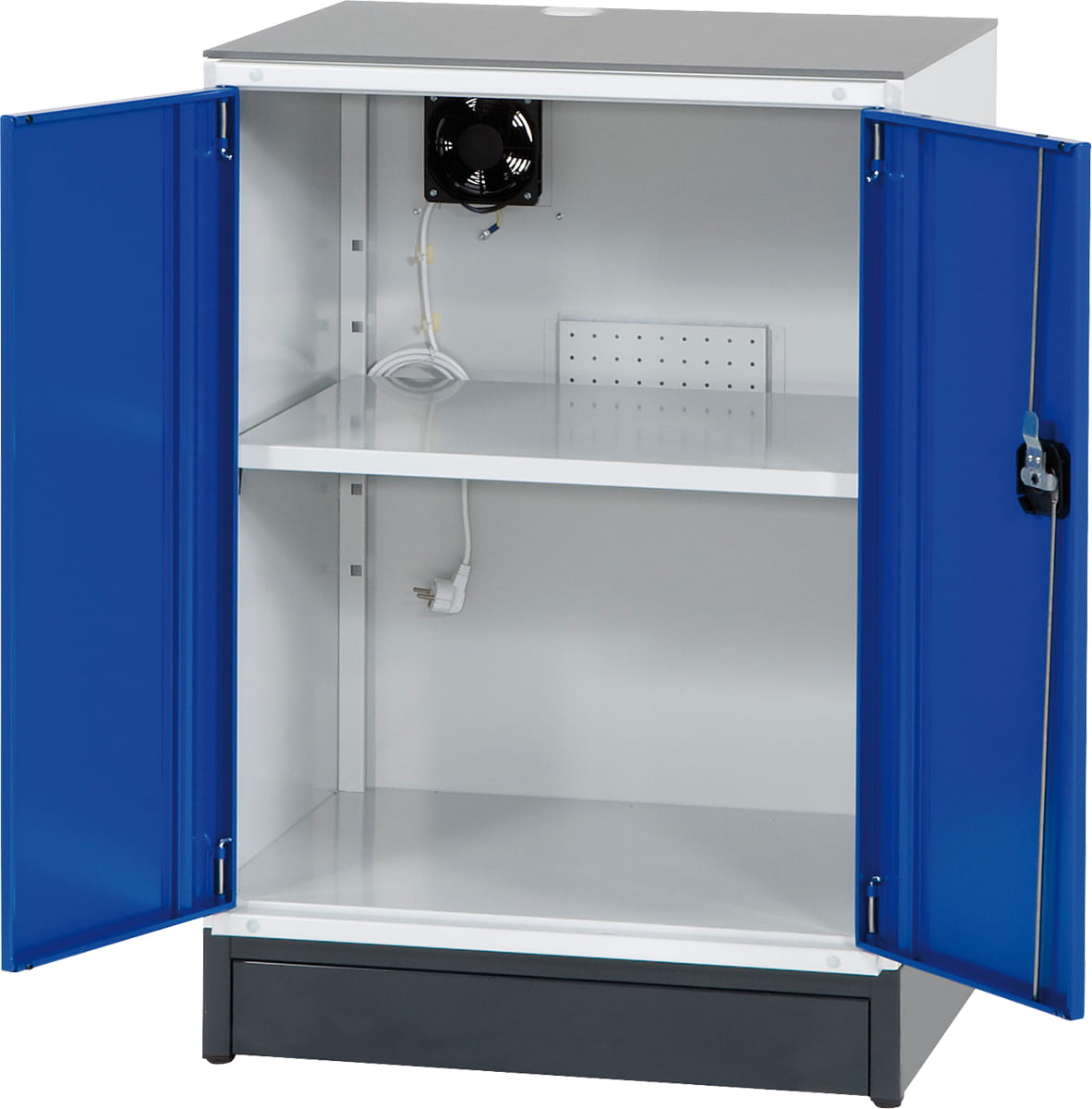 • Stabilna konstrukcja z blachy stal. z zamykanymi drzwiami skrzydłowymi