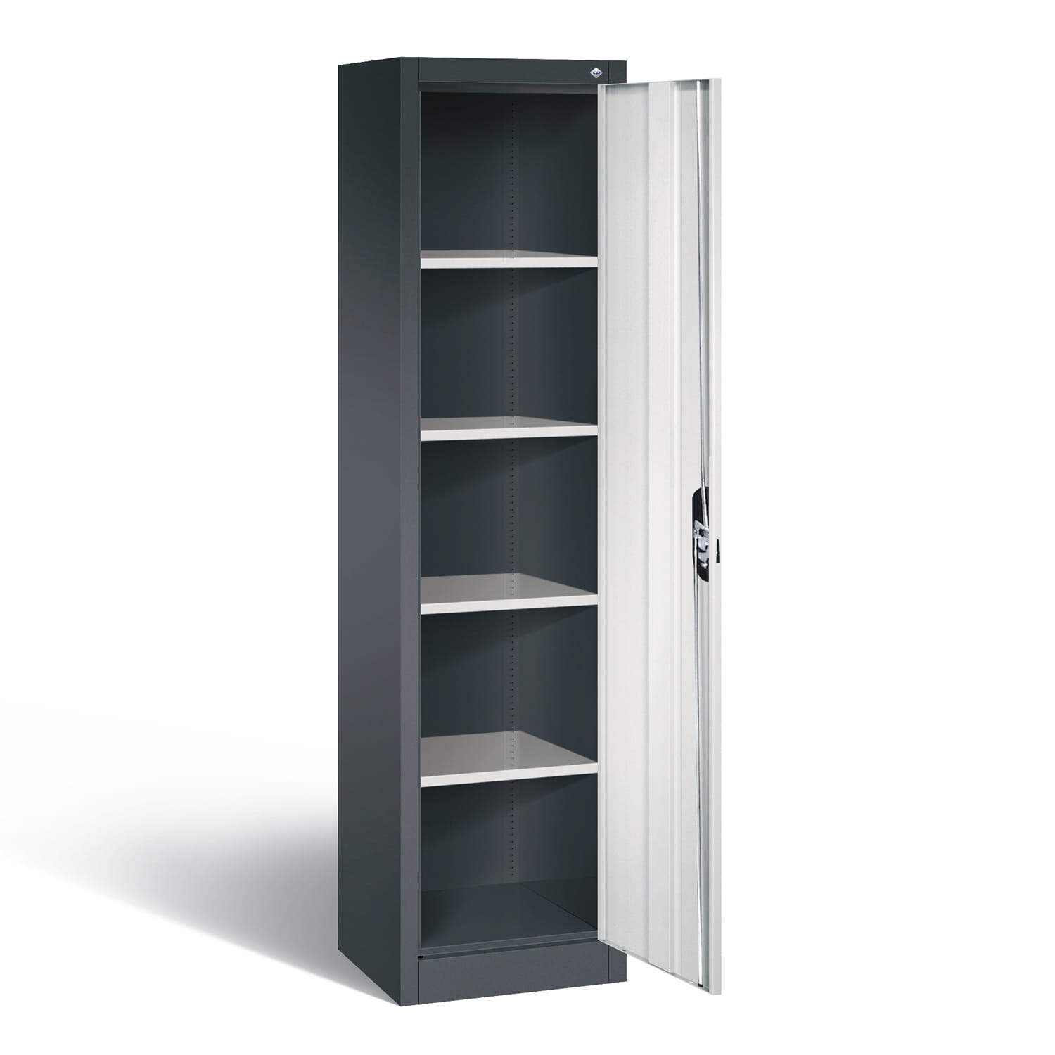 Wewnątrz szafy 4 przestawne półki (5 poziomów na segregatory)