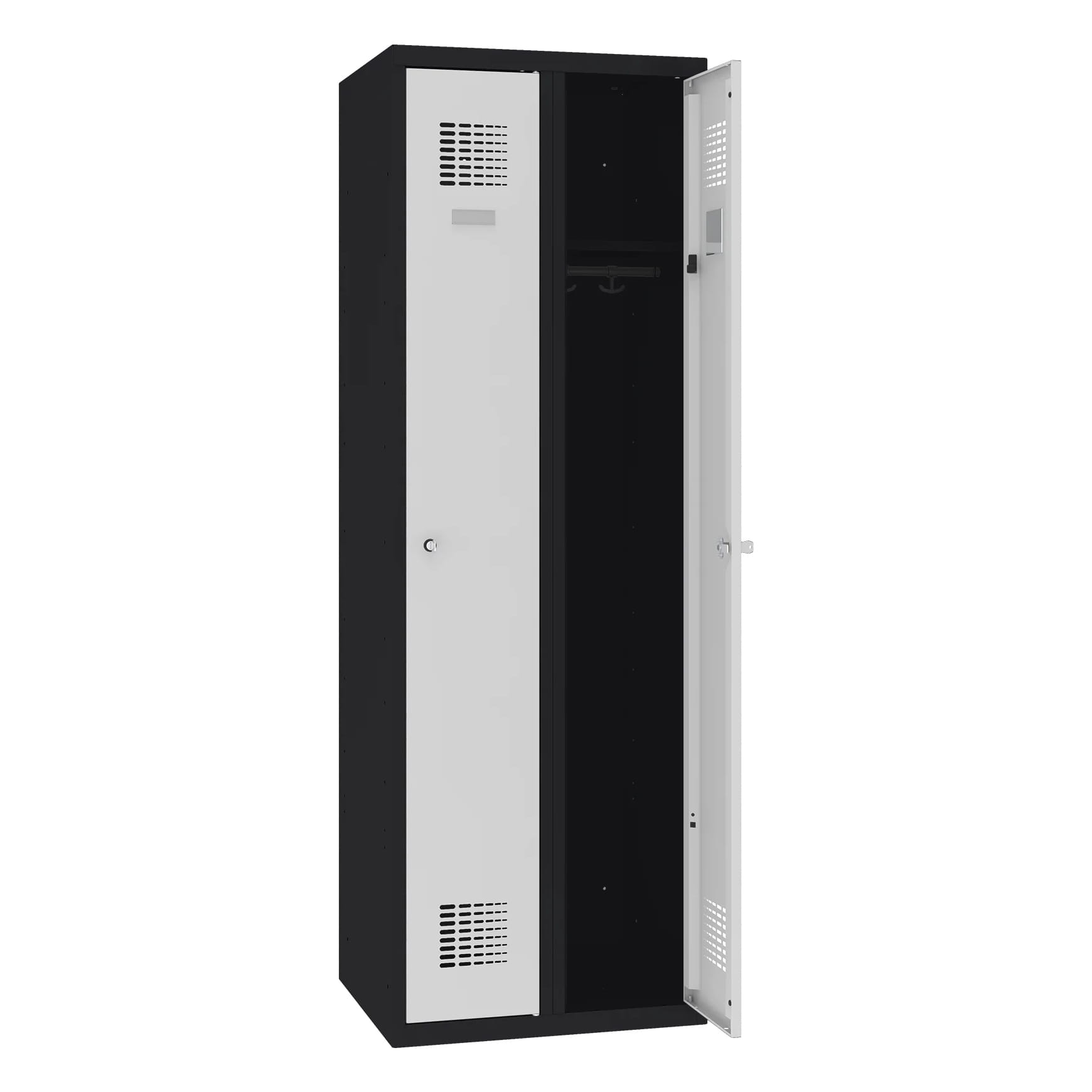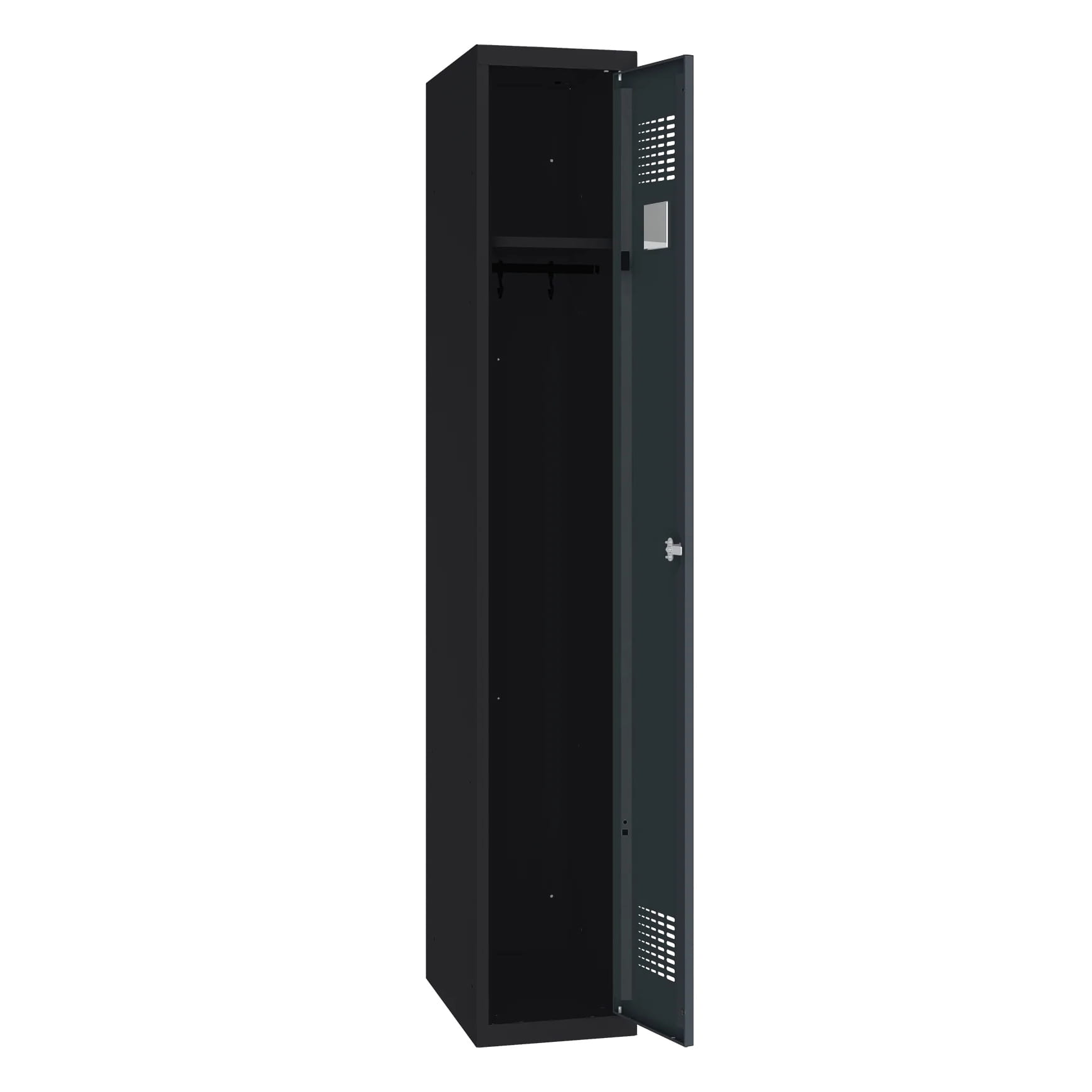 - Wyposażenie: półka, drążek ubraniowy z dwoma haczykami na ubrania, lusterko, samoprzylepny szyldzik, dodatkowy haczyk ubraniowy na drzwiach, otwory wentylacyjne