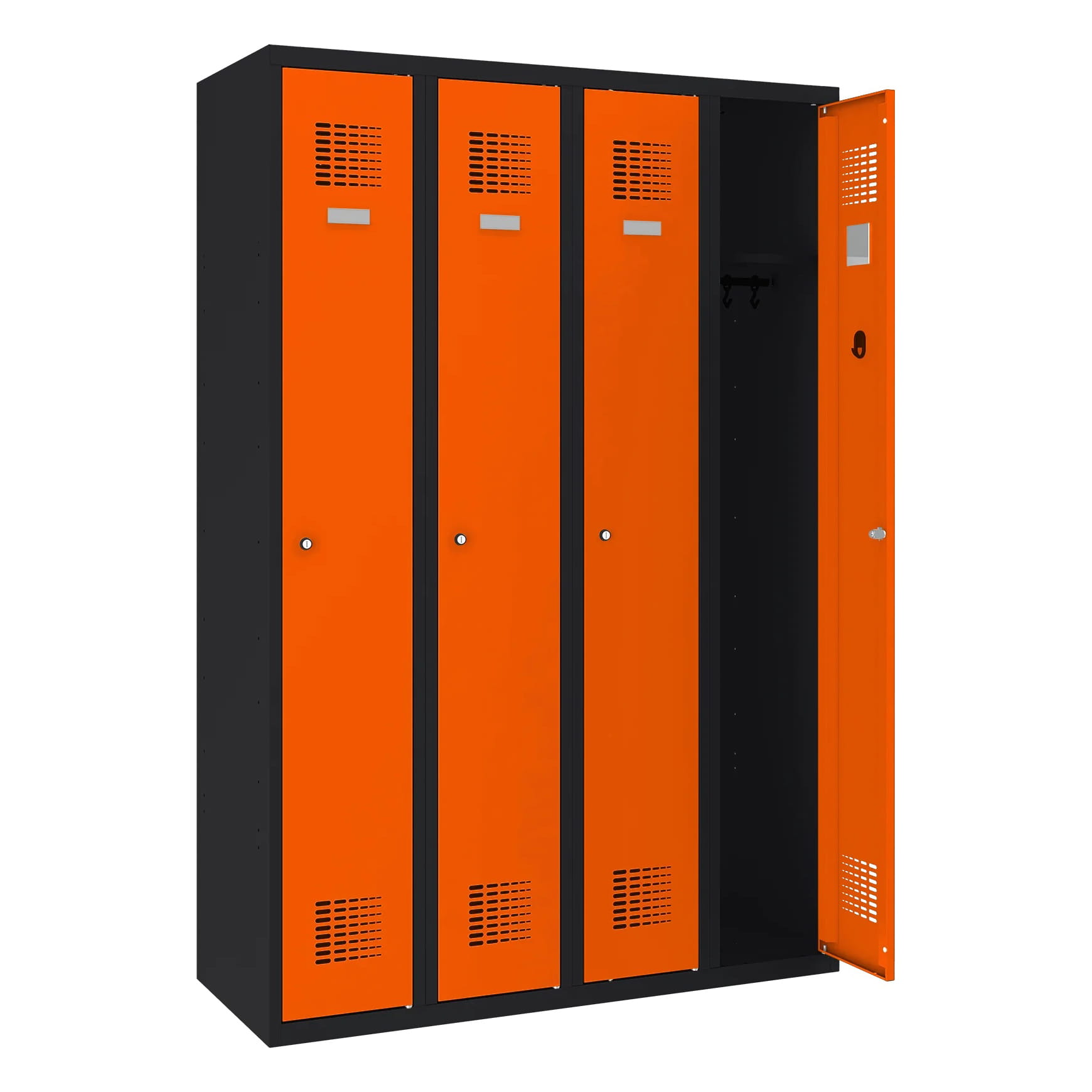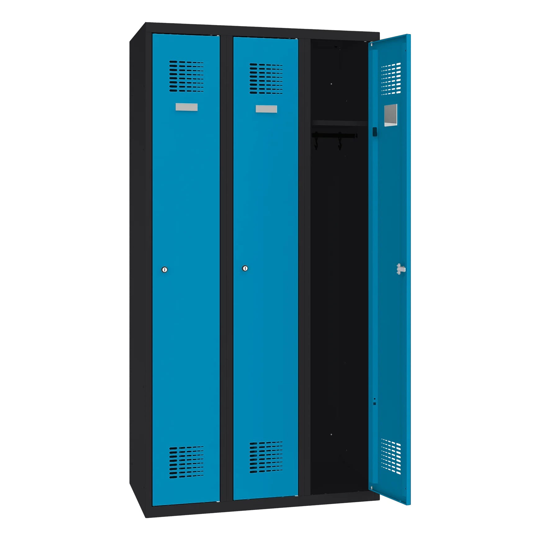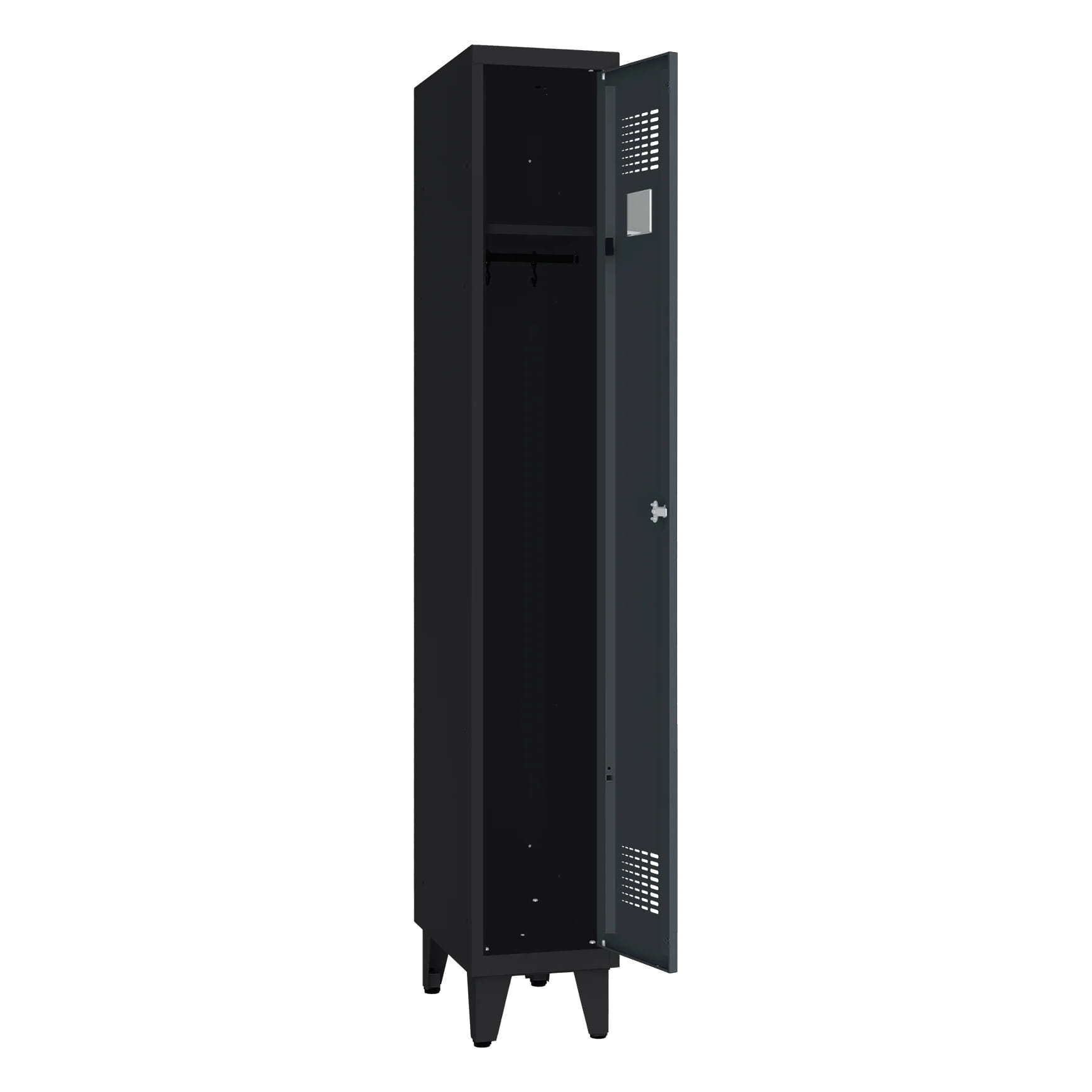 Sum W to rodzina szaf ubraniowych wyposażonych w półkę, drążek ubraniowy z dwoma haczykami na ubrania, lusterko, samoprzylepny szyldzik, dodatkowy haczyk ubraniowy na drzwiach oraz otwory wentylacyjne zwiększające cyrkulację powietrza. Solidna konstrukcja szaf umożliwia ustawienie ich na nóżkach, cokole, podstawie z siedziskiem i półką na buty oraz zamontowanie daszk a. Szafy Sum znajdują zastosowanie w każdej szatni pracowniczej, szkolnej oraz w siłowniach. Możesz nadać im także oryginalny wygląd zamawiając drzwi ze swoją ulubioną grafiką. Meble nie wymagają składania, dzięki czemu zyskują na wytrzymałości i stabilności. W standardzie szafki są dostępne w 16 kolorach bez dopłat.
