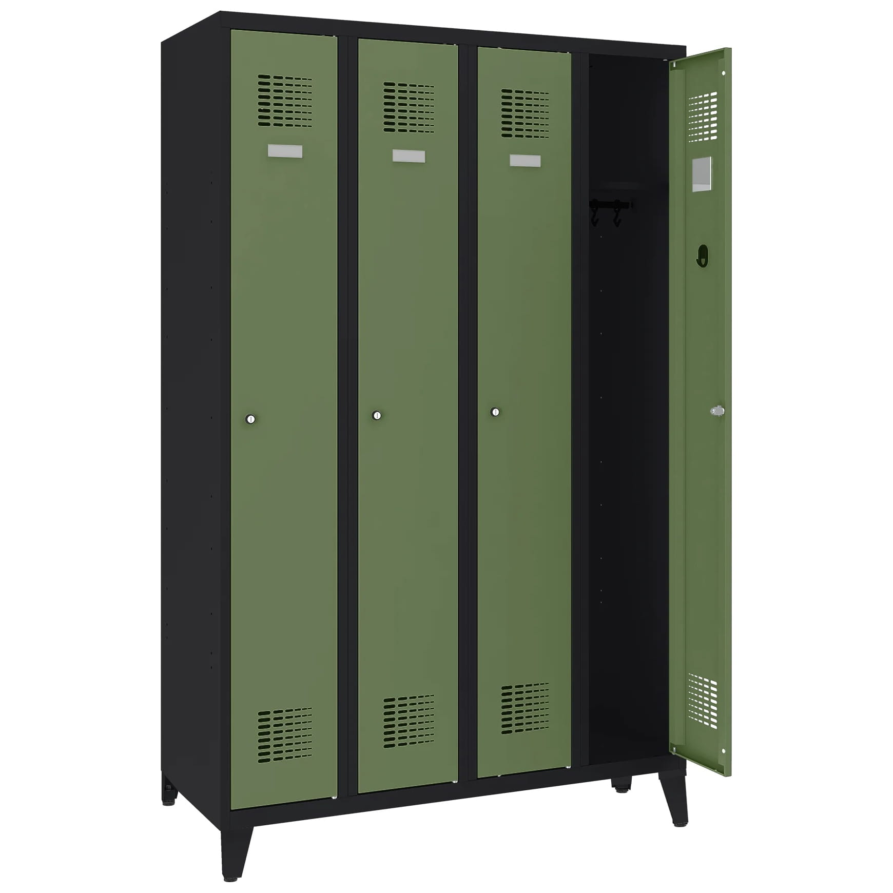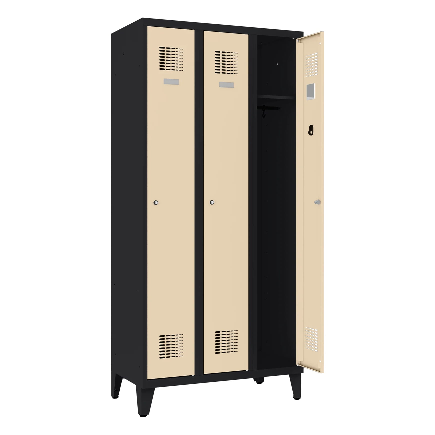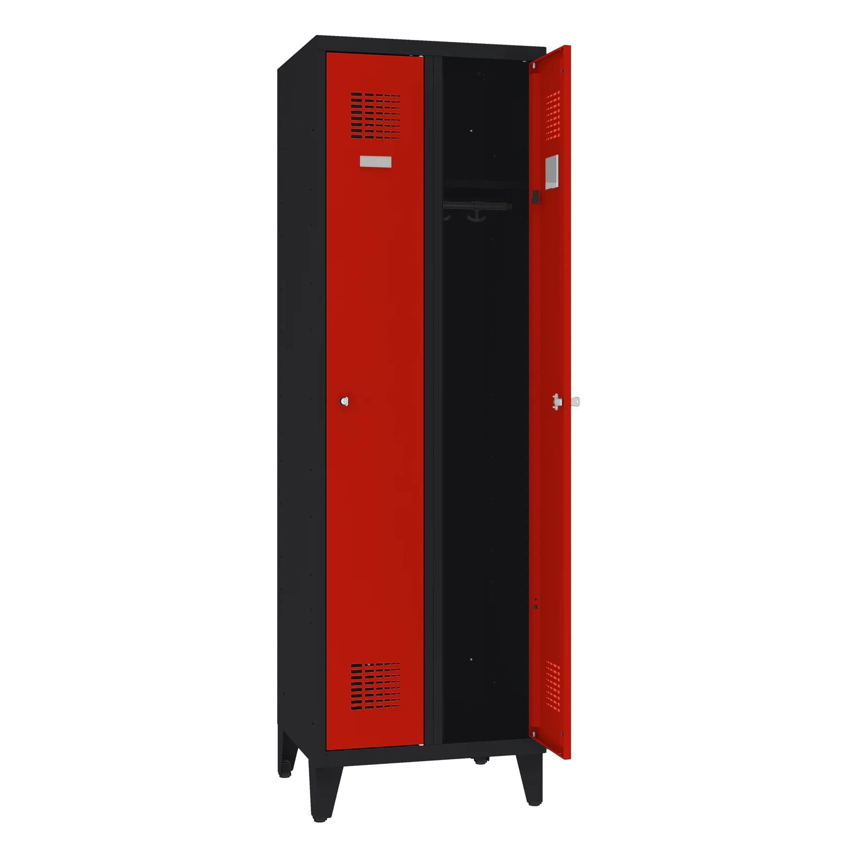 Sum W to rodzina szaf ubraniowych wyposażonych w półkę, drążek ubraniowy z dwoma haczykami na ubrania, lusterko, samoprzylepny szyldzik, dodatkowy haczyk ubraniowy na drzwiach oraz otwory wentylacyjne zwiększające cyrkulację powietrza. Solidna konstrukcja szaf umożliwia ustawienie ich na nóżkach, cokole, podstawie z siedziskiem i półką na buty oraz zamontowanie daszk a. Szafy Sum znajdują zastosowanie w każdej szatni pracowniczej, szkolnej oraz w siłowniach. Możesz nadać im także oryginalny wygląd zamawiając drzwi ze swoją ulubioną grafiką. Meble nie wymagają składania, dzięki czemu zyskują na wytrzymałości i stabilności. W standardzie szafki są dostępne w 16 kolorach bez dopłat.