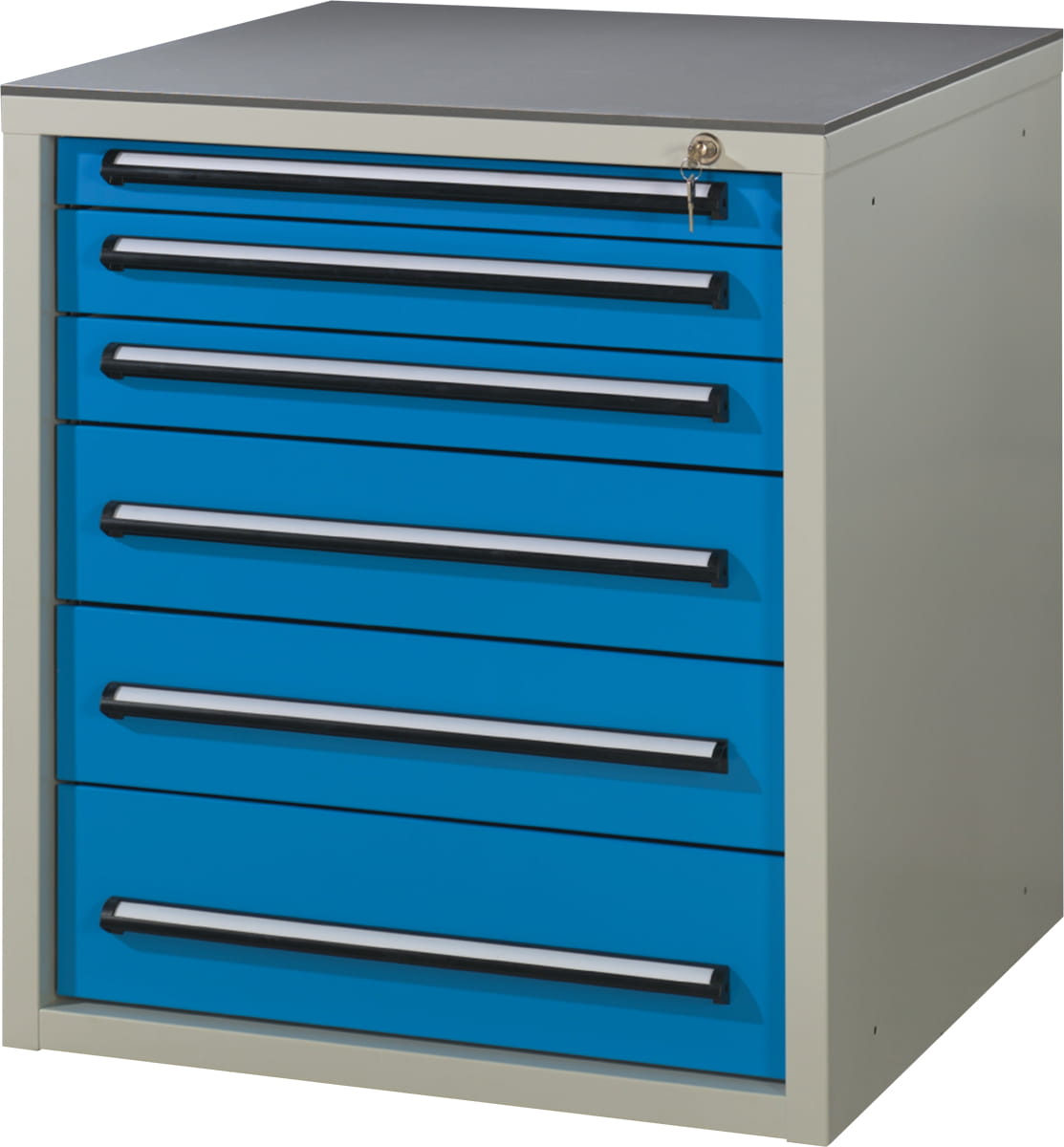 - Centralny system zamknięcia (blokowania) szuflad pozwala w bezpieczny sposób otwierać tylko jedną szufladę bez ryzyka wywrócenia się szafy