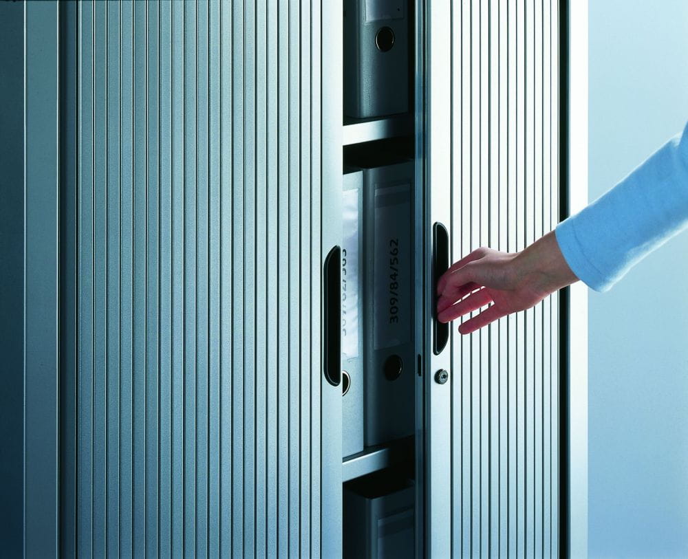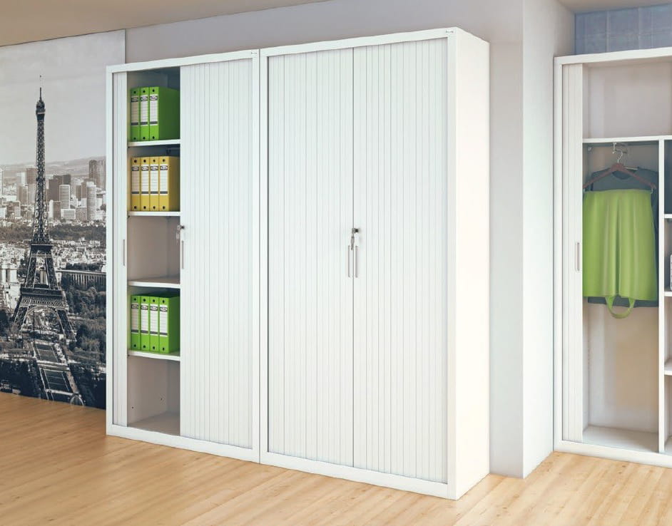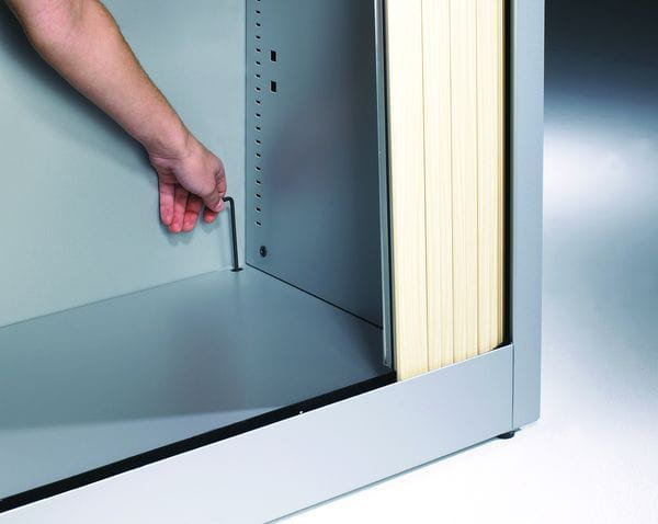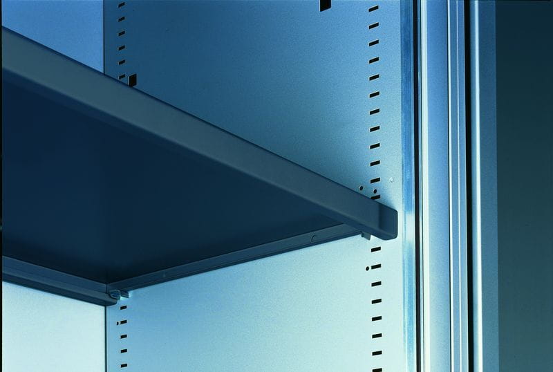 Szafy z rodziny SBM z drzwiami żaluzjowymi są świetnym rozwiązaniem dla zwiększenia przestrzeni przechowywania dokumentów w ciasnych pomieszczeniach. Wariant z drzwiami żaluzjowymi dodatkowo oszczędza przestrzeń, którą zajmowałoby otwarcie drzwi skrzydłowych. Szafy z rodziny SBM dostępne są w wielu konfiguracjach wnętrza. Meble nie wymagają składania, dzięki czemu zyskują na wytrzymałości i stabilności. Ciągła perforacja wewnętrzna na całej wysokości szafy pozwala regulować wysokość półek co 25 mm, dzięki temu metalowe szafy SBM są uniwersalne w zastosowaniu. Zawartość szafy chroni zamek zatrzaskowy. Szafy SBM cechują się ponadczasowym designem i wysoką funkcjonalnością. Szafy spełniają wymogi RODO. Do szaf SBM dostępne są nadstawki z drzwiami żaluzjowymi.